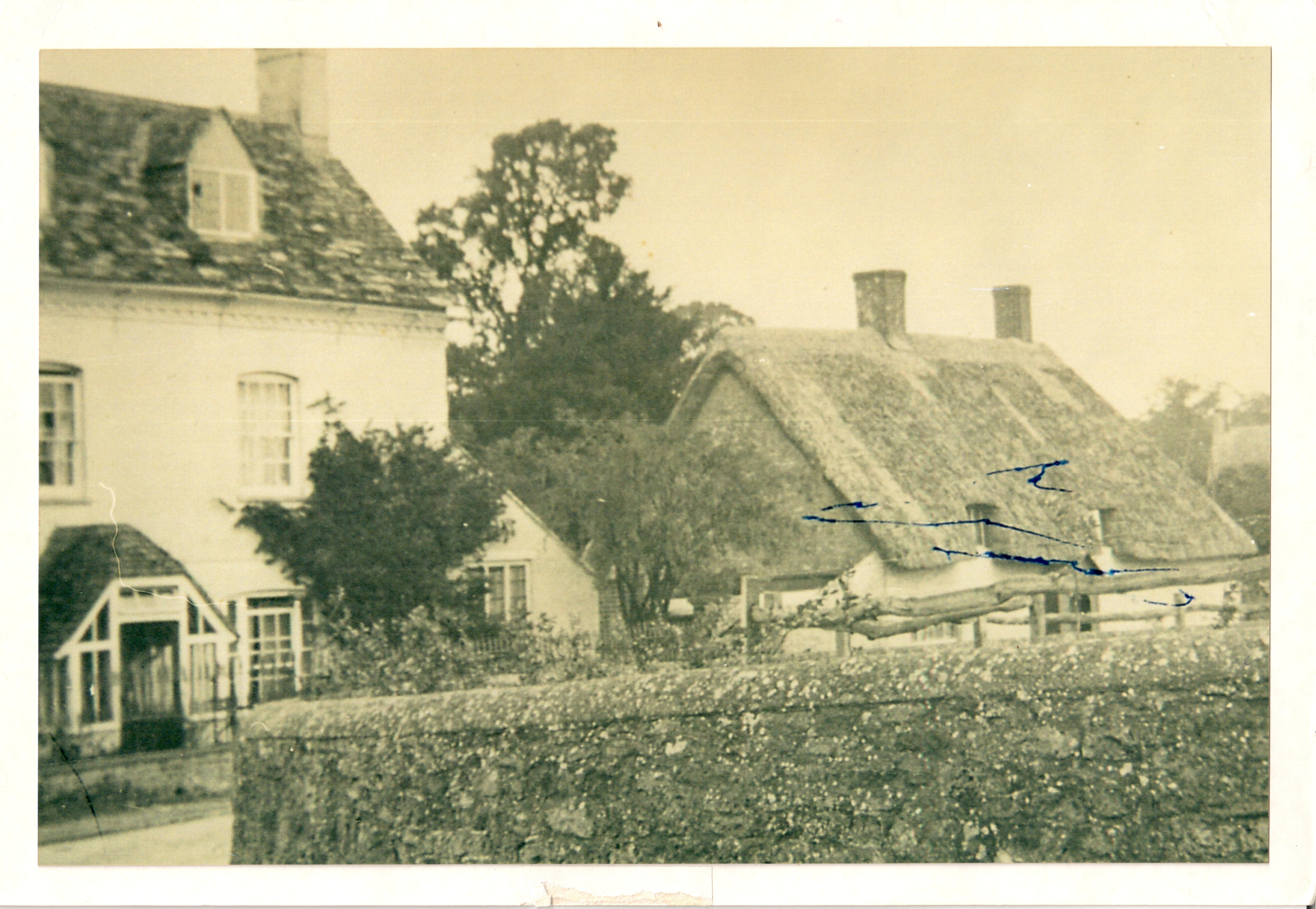 Chatting in the village I was updated on this photo, the building in the foreground is a cottage that was knocked down some time ago and was in the garden of what is now Highview next door to Pottinger Cottage. The barn was in where the front garden of Clover House.